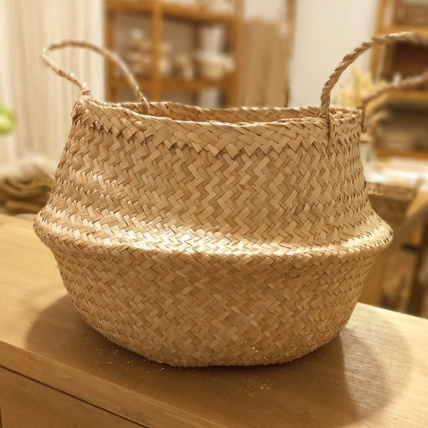 Cesto de fibras naturales con manijas.